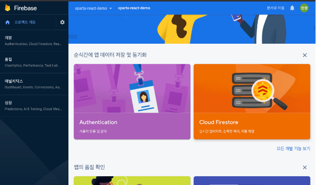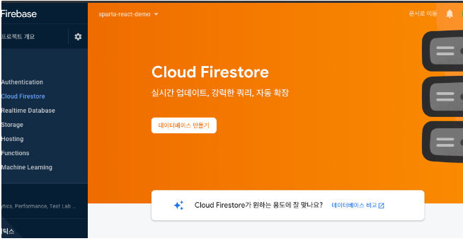 이중에서, FireStore를 사용해보자. Hosting(서버 없이 웹 서비스를 배포할 수 있도록 도와주는 서비스)
