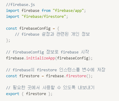 이때, firebaseConfig 내용만 firebase.js 파일에 복붙해주자.