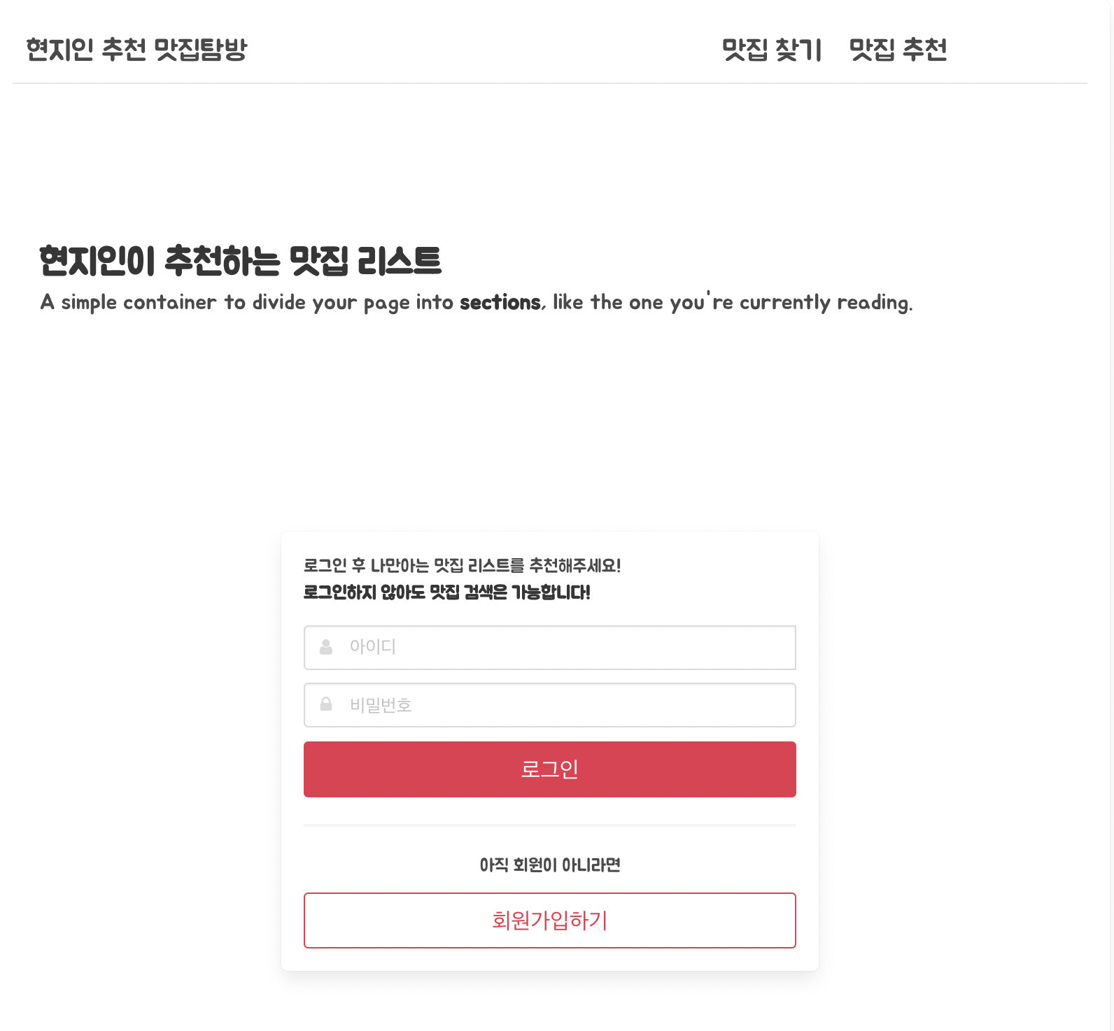 맛집 추천화면은 맛집정보들을 입력하는 화면으로 구성되어 있지만 ㅠㅠ 이게 가운데 정렬을 해야겠다