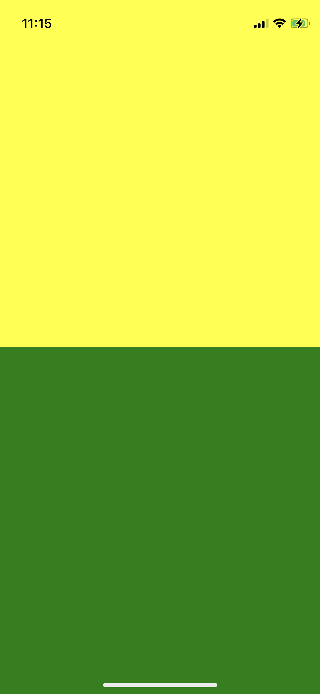 | import { StatusBar } from 'expo-status-bar'; import React from 'react'; import { StyleSheet, Text, View } from 'react-native'; export default function App() { return ( <View style={styles.container}> <View style={styles.subContainerOne}></View> <View style={styles.subContainerTwo}></View> </View> ); } const styles = StyleSheet.create({ container: { flex: 1, backgroundColor: '#fff', }, subContainerOne: { flex:1, backgroundColor:"yellow" }, subContainerTwo: { flex:1, backgroundColor:"green" } }); |