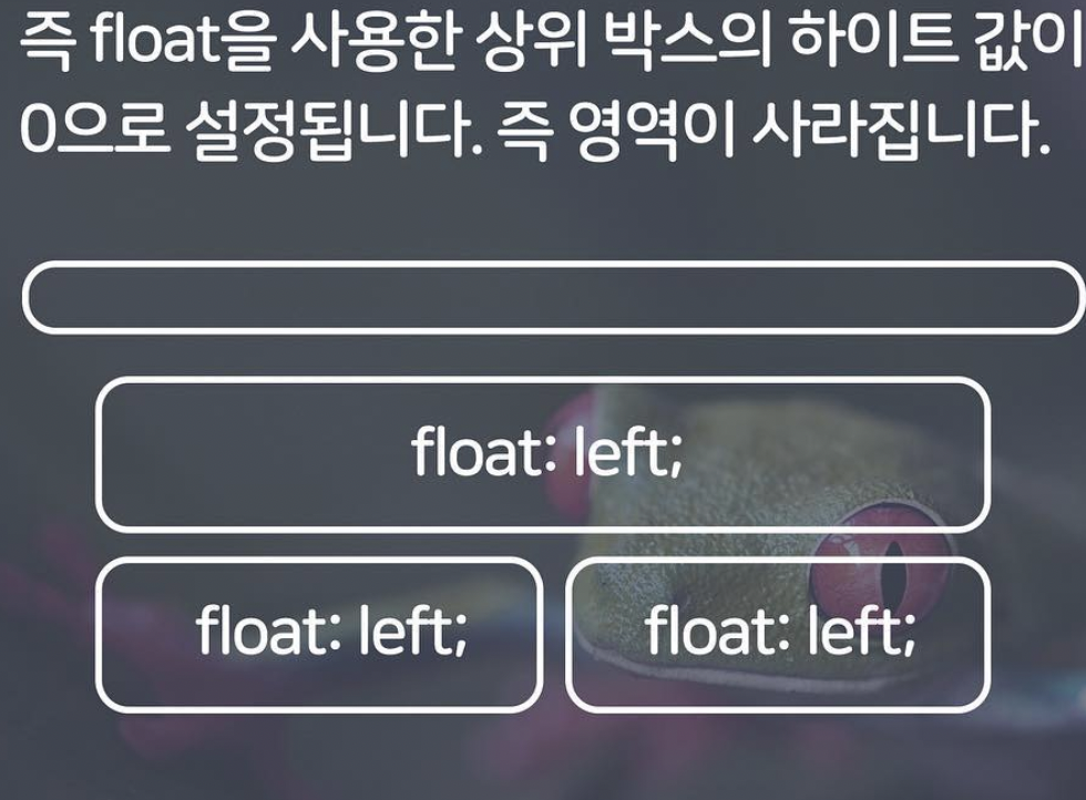 → float :left 를 사용하는경우 영역이 깨지는 현상