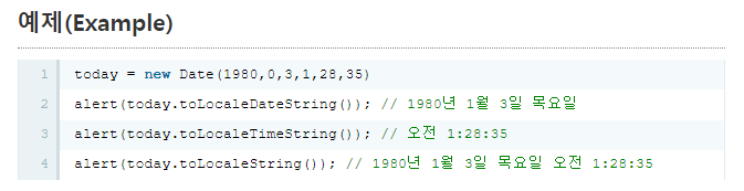 * toLocaleTimeString() : 사용자의 문화권에 맞는 시간표기법을 리턴 (운영체제 마다 문화권에 맞는 표기법을 가지고 있음)