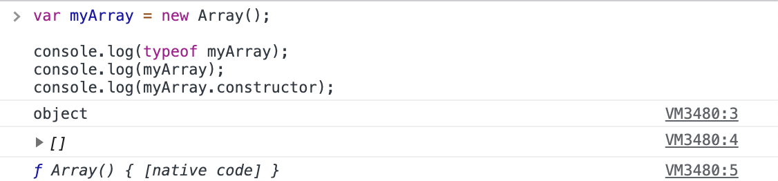 var myArray = new Array(); // myArray는 Array의 인스턴스다.