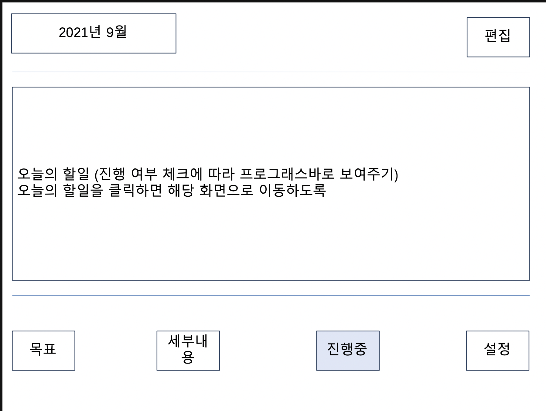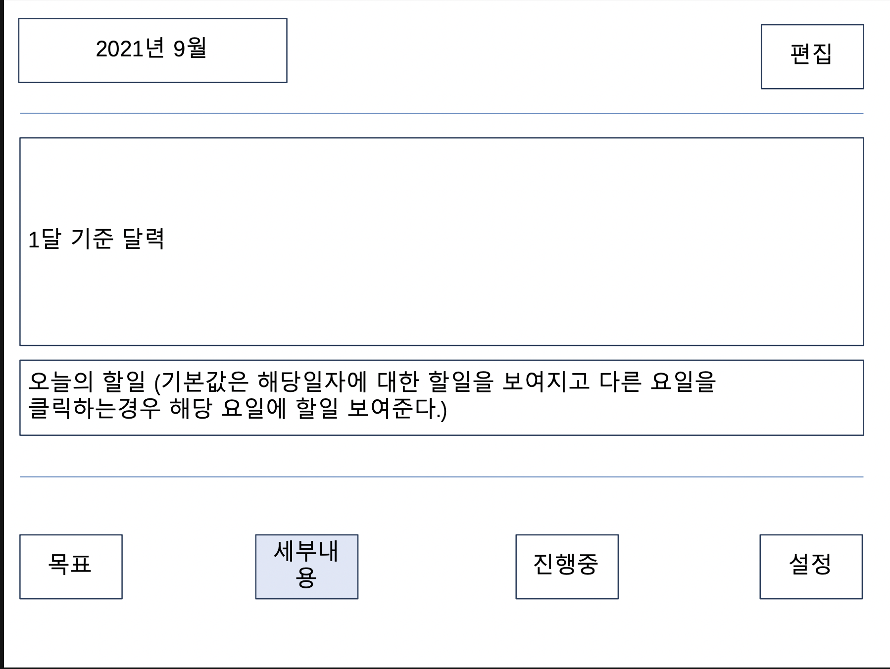 * 해당 세부 화면은 편집버튼을 누르고 오늘의 할일 버튼을 누르면 해당 할일에 대해서만 수정할 수 있도록 페이지 전환 시켜줘보자.