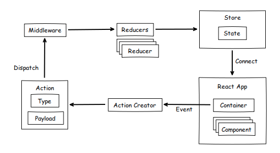 액션을 dispatch 하면 reducer에서 이를 처리 하기 위해 앞서 사전이 지정된 작업들을 실행함 (액션 과 리듀서 중간사이)