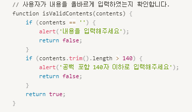 위에 작성된 스크립트는 "빈값 or 140이상" 일경우에는 false 를 리턴하도록 작성된 코드이며, 사전에 작성을 했기때문에